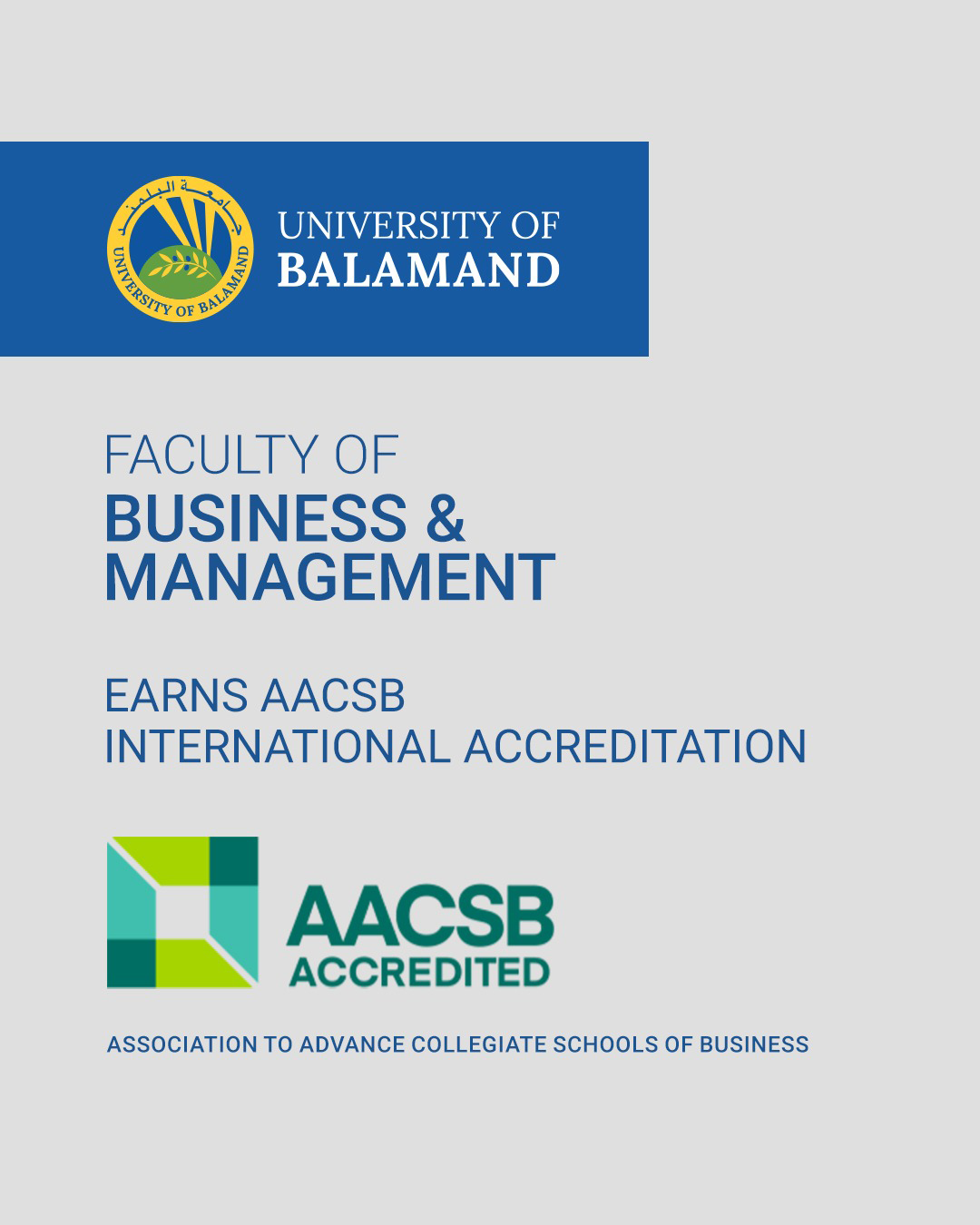 The Faculty of Business and Management (FOBM) at the University of Balamand has achieved the AACSB International Accreditation (The Association to Advance Collegiate Schools of Business), a globally recognized hallmark of excellence in business education, research, and societal impact.