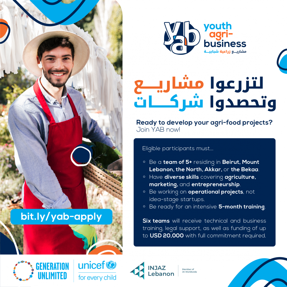 INJAZ Lebanon, with the support of UNICEF Lebanon and Generation Unlimited, has just launched the Youth Agri-Business (YAB) Program—an initiative designed to empower youth-led businesses that are already making strides in this vital industry.