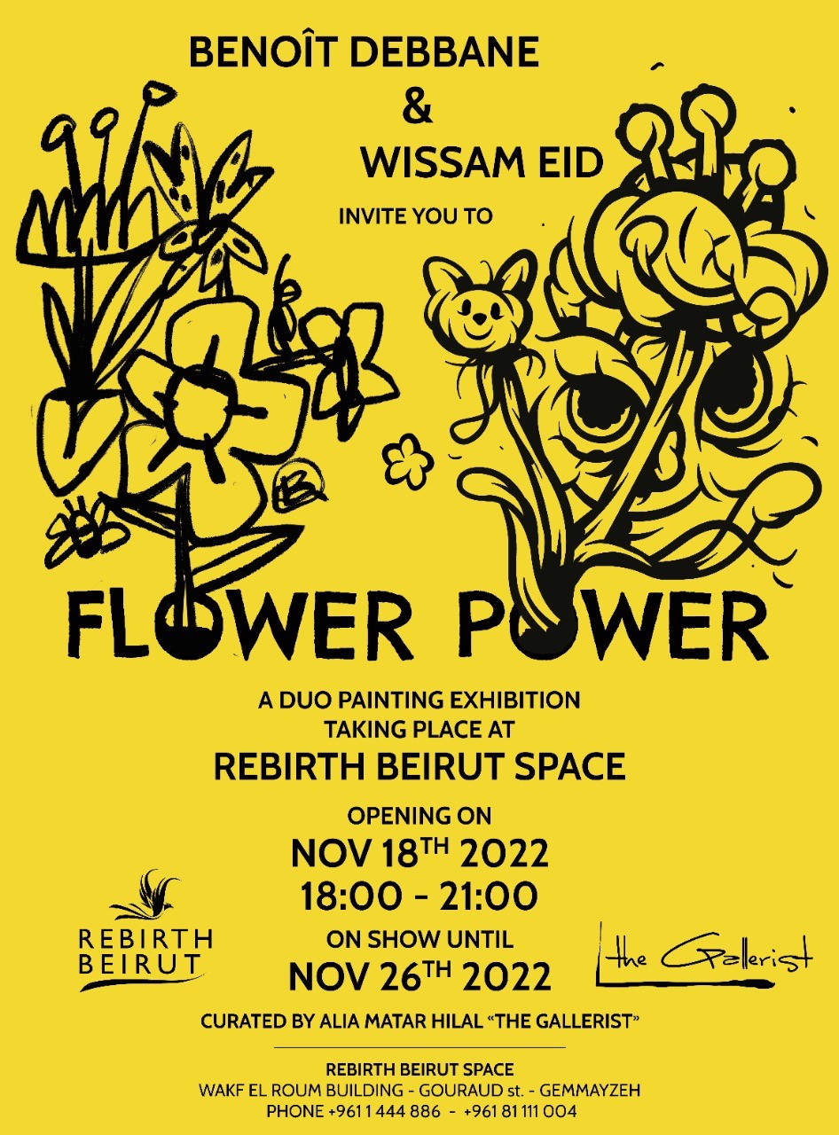 “Rebirth Beirut” is preparing to launch its new exhibition entitled “Flower Power”, an art exhibition that brings together Benoît Debbané and Wissam Eid, two very similar artists from two different generations.