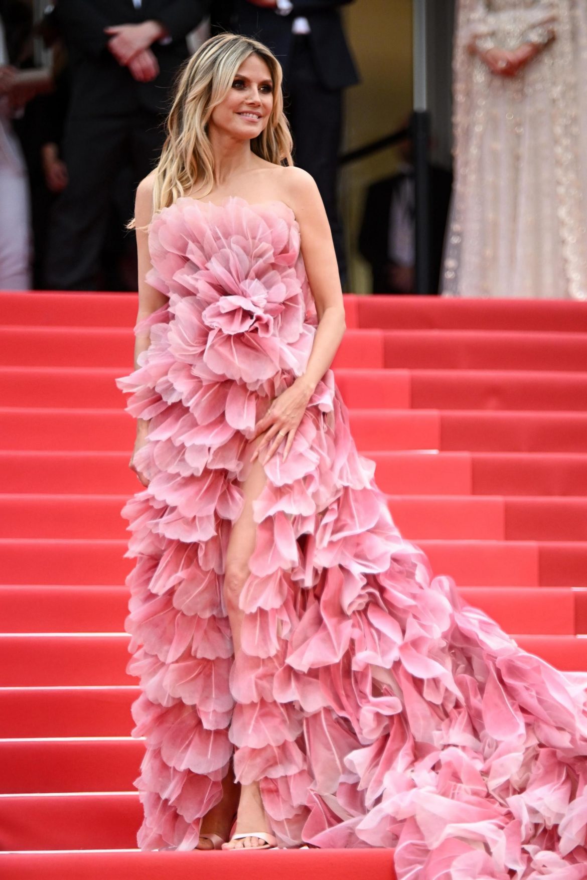Heidi Klum attended the 78th Cannes Film Festival in a pink gradient look with organza petals from Riyadh’s ‘The 1001 Seasons of ELIE SAAB’ collection.