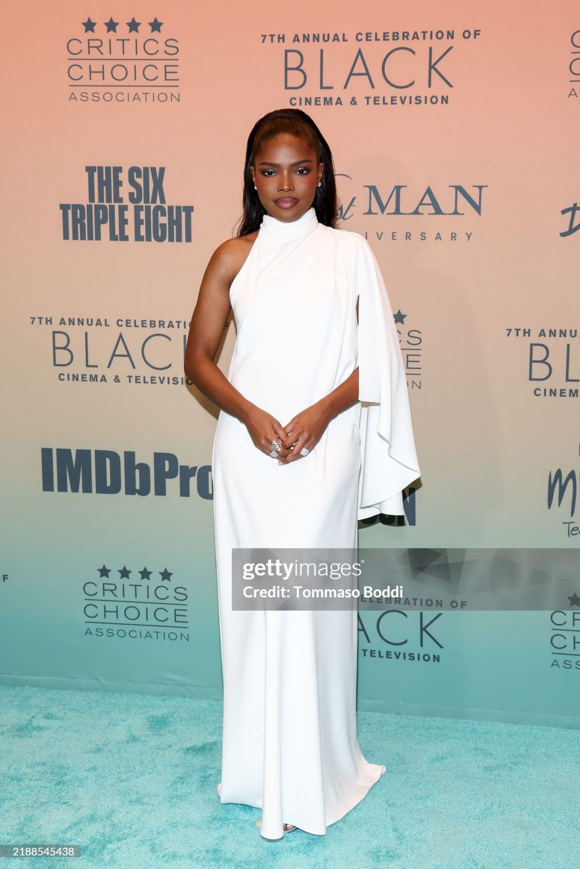 Los Angeles, CA – Actress Ryan Destiny looked beautiful wearing an ivory one-shoulder gown with a flowing cape sleeve from Zuhair Murad’s Pre-Fall 24 RTW Collection.