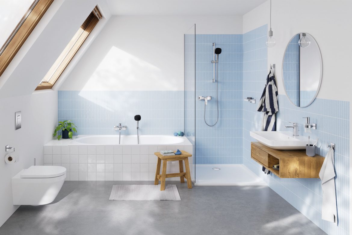 - Summer-ready style: GROHE Cubeo faucets pair perfectly with the GROHE Tempesta shower system and GROHE Euro Ceramic for a fresh seasonal look
