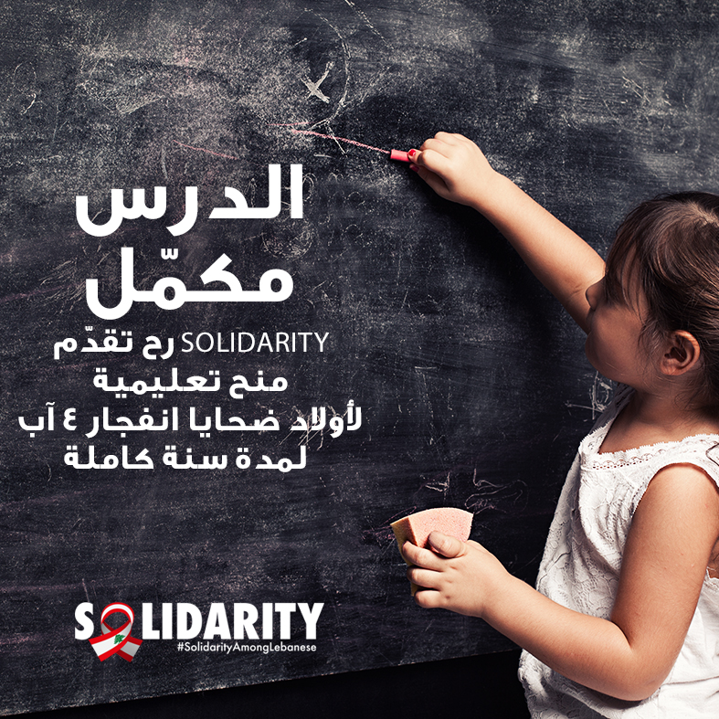 Mr. Charles G. Hage President of “Solidarity”, announced the initiative on the eve of the first anniversary, hoping that it would be a new contribution that would help “our people and our brothers and sisters” complete their educational path, especially that Beirut was famous for its academic level over the years, and will remain so.