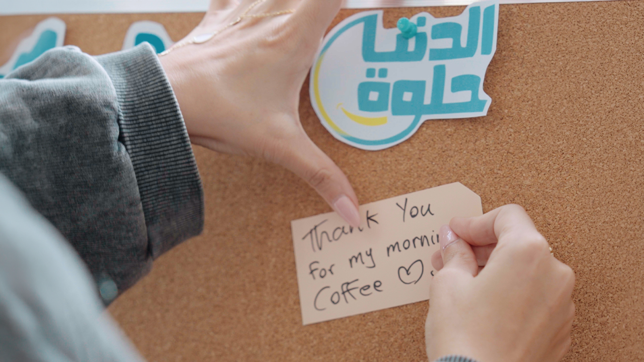 As part of the activation, delivery riders who arrived at the office expecting a normal delivery were instead welcomed by the Dunia Helwa team and surprised with a heartfelt gesture of appreciation. Riders were guided to a “Thank You Wall” featuring messages such as: