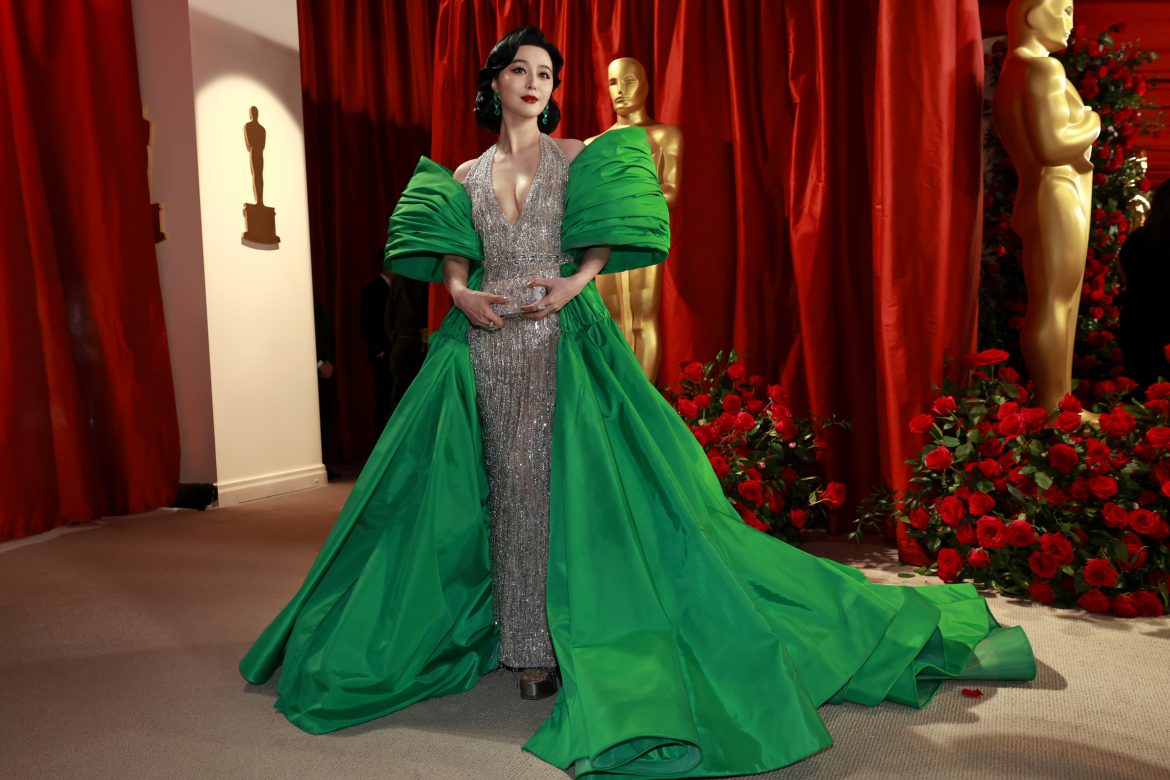 Fan Binging made quite an entrance at the white carpet’s ceremony in a silver hand embroidered charleston dress, paired with a taffeta green overskirt & sumptuous sleeves, from the Couture SS2023 collection.