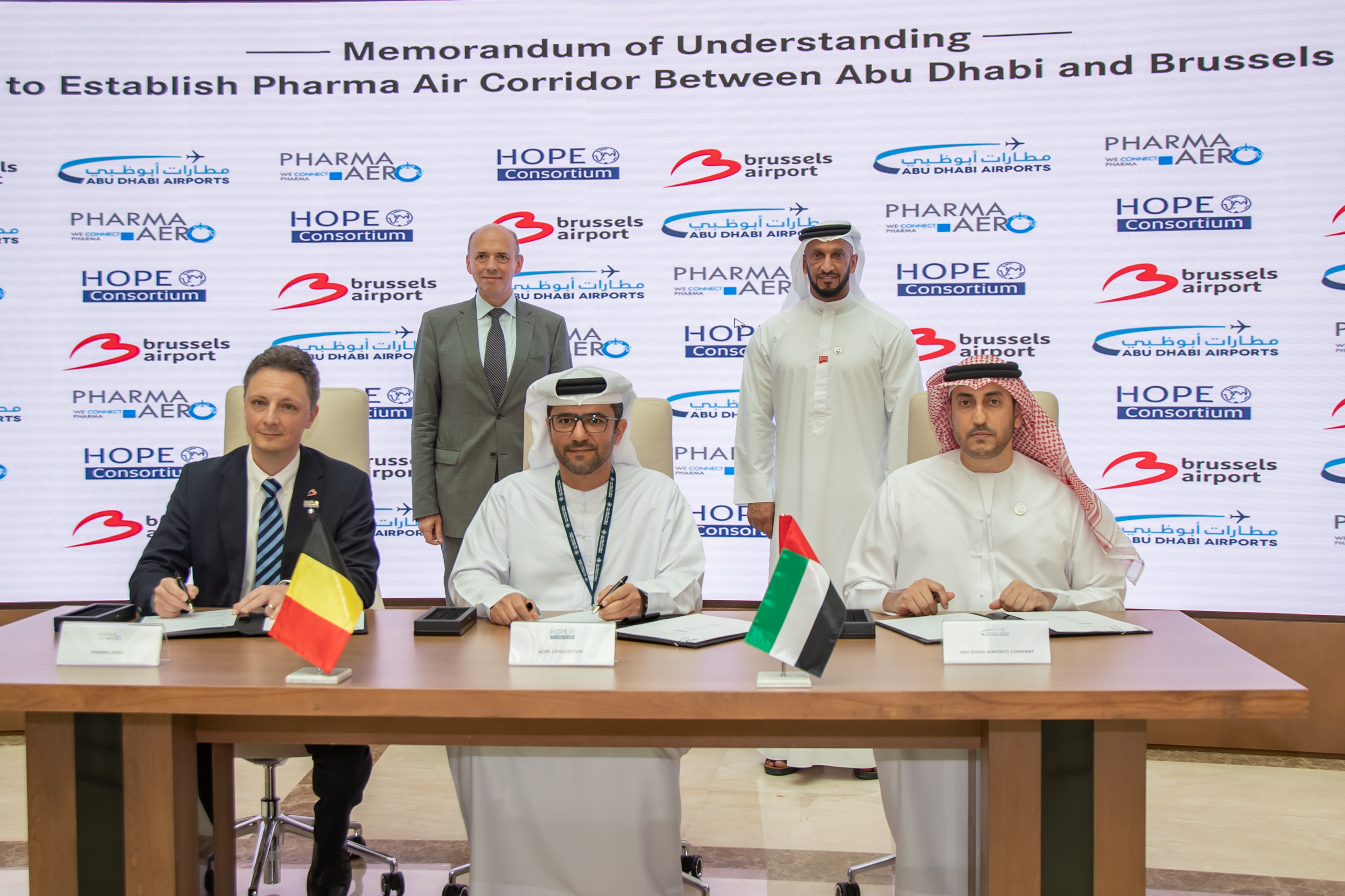 The first agreement was between the HOPE Consortium, Abu Dhabi Airports Company (ADAC), Brussels Airport Company and Pharma.Aero. Led by the Department of Health – Abu Dhabi, the regulator of the healthcare sector in the emirate, the collaboration aims to establish a fully compliant origin-to-destination pharma air corridor between Abu Dhabi and Brussels Airports. The dedicated pharma trade lane will unite key compliant and sector certified supply chain stakeholders, including forwarders and ground handling agents.