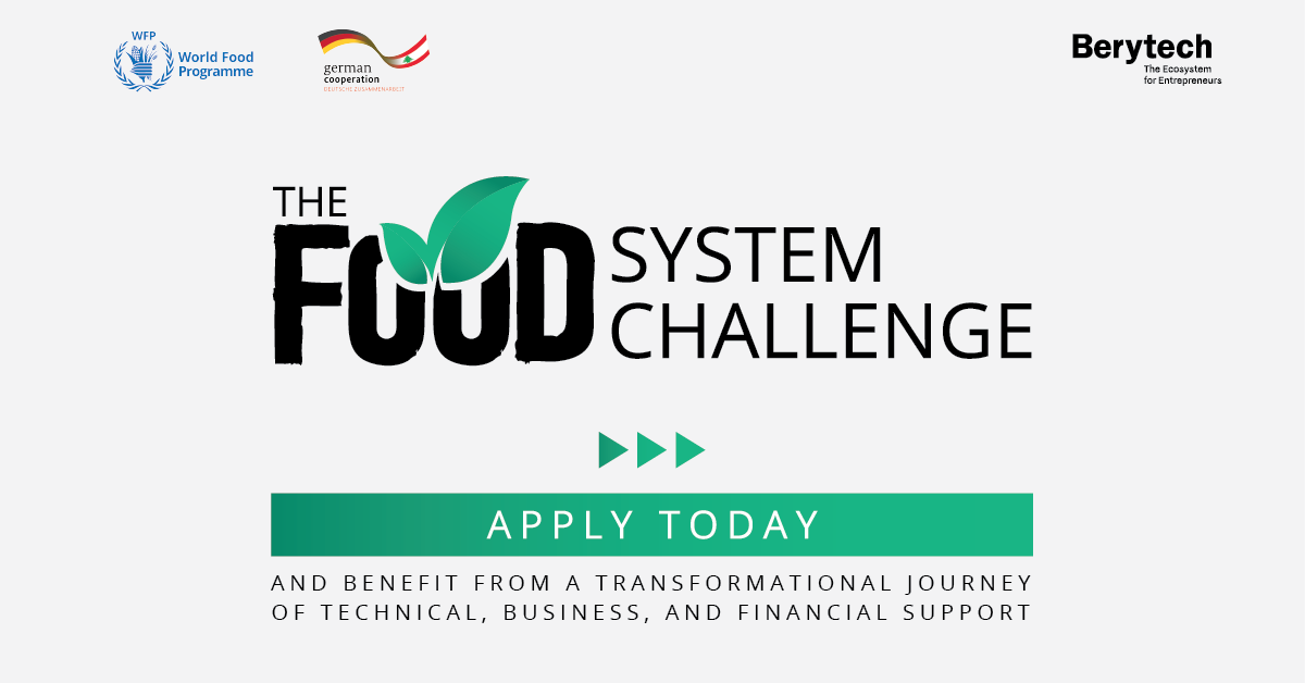 Berytech and the World Food Programme (WFP) have launched The Food System Challenge to improve food security and increase resilience in the food system in Lebanon through business support, technical assistance, in-kind grants, and support packages to SMEs to enable their ideas and roll-out or scale their impactful food system solution.