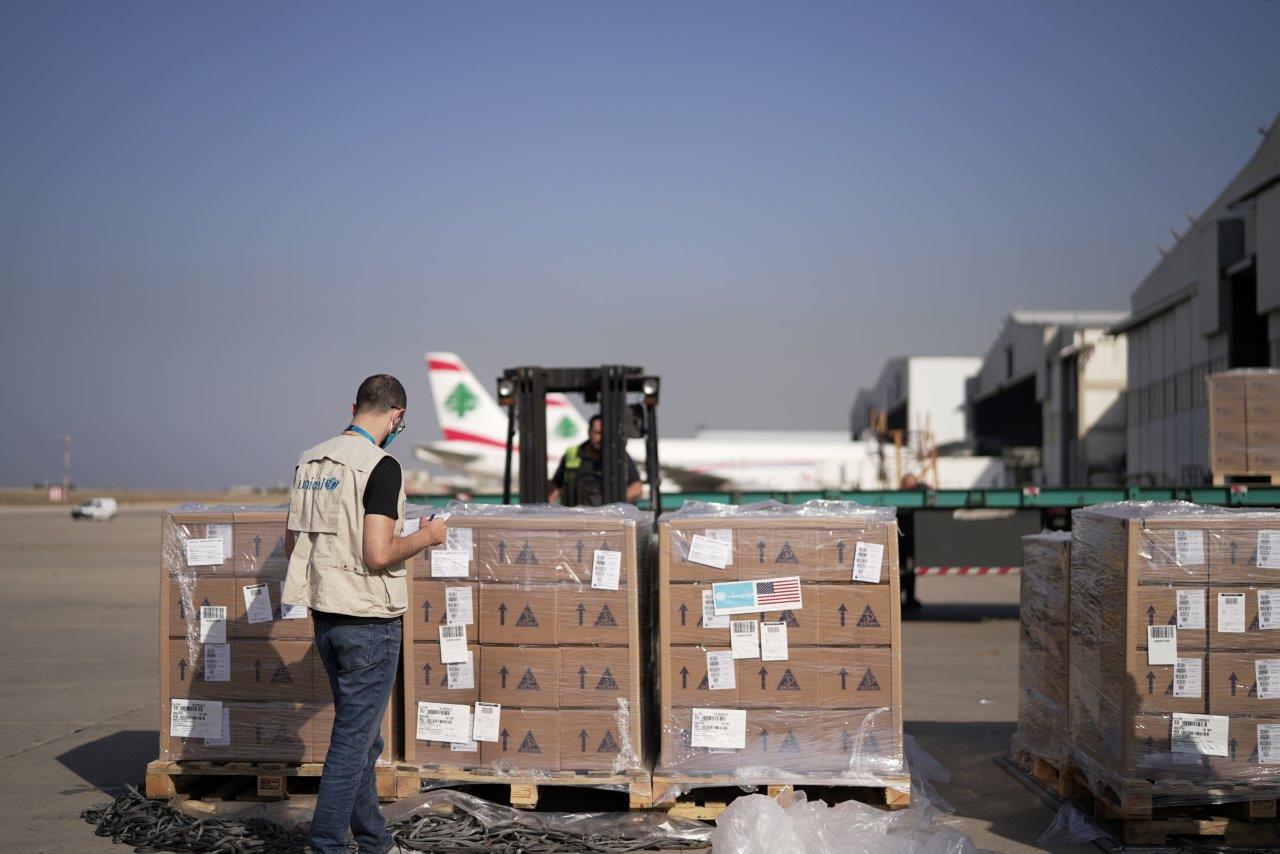 The humanitarian shipment arrived this morning to the Beirut international airport through a UNICEF charter flight. The shipment included essential drugs, oral rehydration salts and antibiotics, medical and surgical supplies, and nutritional commodities. These supplies will support access to healthcare for around one million children and women through five public hospitals and 166 primary healthcare centres and border vaccination centres for over one year.