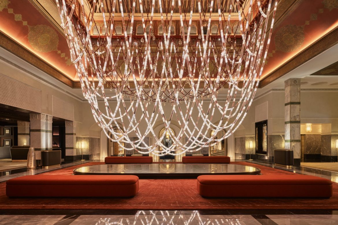 Collaborating with French design studio Jouin Manku, these new installations are a tribute to Moroccan tradition with a touch of global sophistication. An impressive near-nine-meter-long chandelier dominates the lobby, while light installations reminiscent of tapestries enhance Bar Majorelle, bathing La Mamounia in a refined glow.