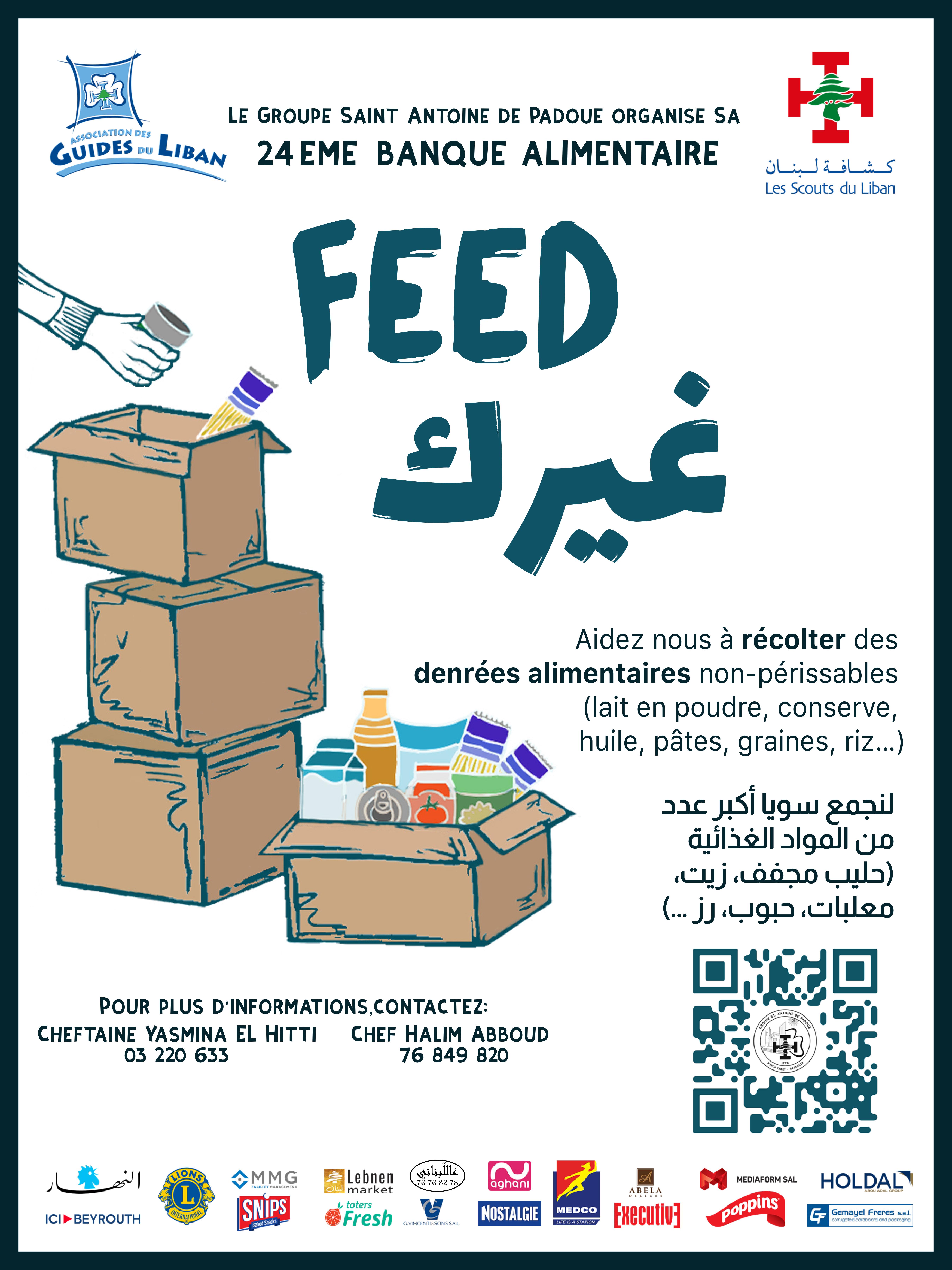 Groupe Saint Antoine de Padoue – Horsh Tabet is organizing it’s 24th consecutive Food Bank on Saturday, December 18th and Sunday December 19th, 2021! You can find our Scouts and Guides at the doors of more than 60 supermarkets all over Lebanon and contribute by providing them with imperishable food products. This year, you can also contribute from the comfort of your homes via three online platforms: #JustHelp, Toters Fresh and Lebnen Market! All you have to do is access their platforms, choose the products/bundles of your choice and choose your payment methods: all of your orders and donations would be immediately delivered to Local Saint Antoine de Padoue in Sin el Fil.