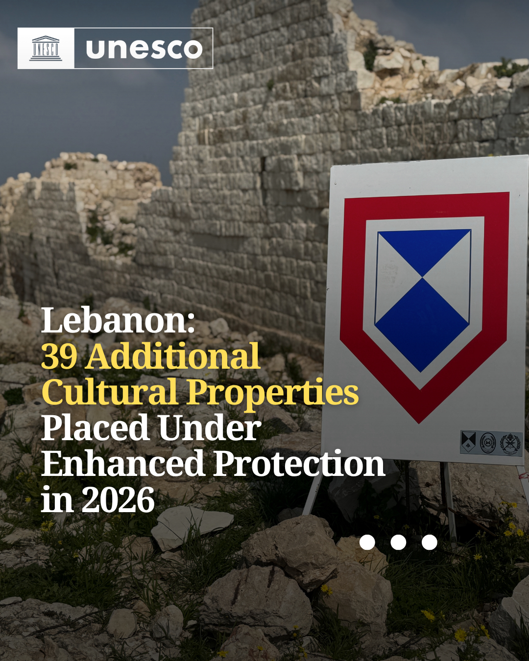 Paris, 1 April 2026 – UNESCO today convened an extraordinary meeting to strengthen the protection of cultural heritage in Lebanon, following the country’s request. The meeting – an extraordinary session of the Committee for the Protection of Cultural Property in the Event of Armed Conflict – led to granting provisional enhanced protection to 39 cultural properties as well as the provision of an international financial assistance, totaling over 100,000USD for emergency operations on the ground.