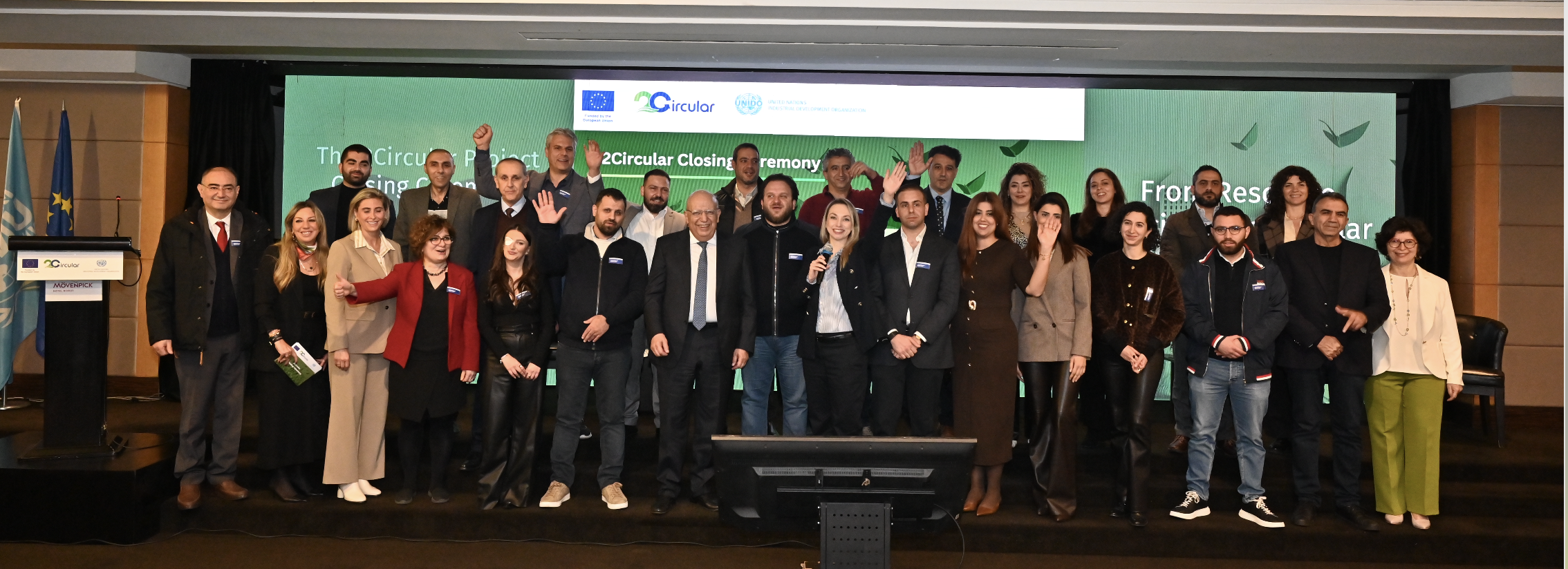 The European Union–funded 2Circular project concluded with a high-level closing ceremony held at the Mövenpick Hotel in Beirut, bringing together representatives from the public and private sectors, international partners, and project beneficiaries. The event celebrated key achievements in advancing sustainable industrial transformation and promoting the adoption of circular economy principles in Lebanon.
