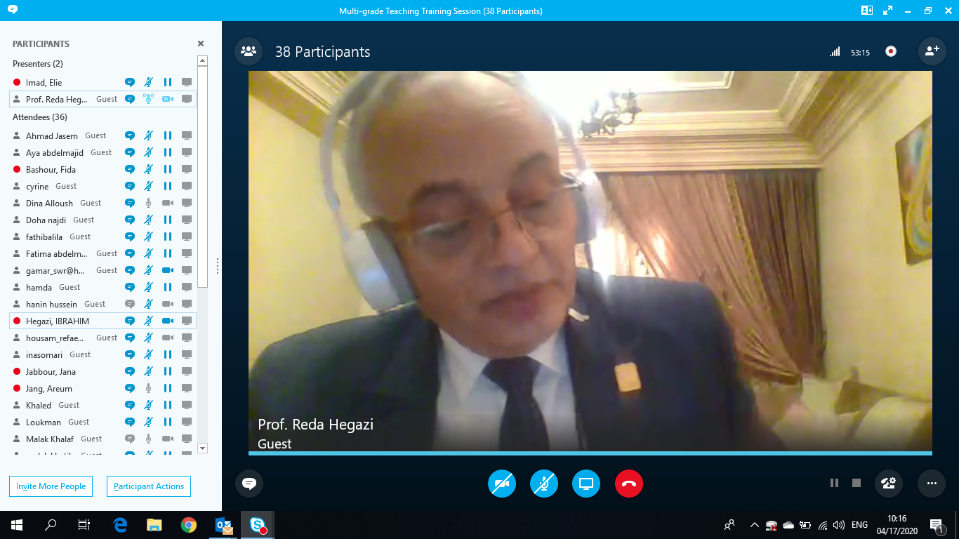 A large group of trainers from Lebanon, Egypt, Sudan, and Libya takes part in this two-day webinar.