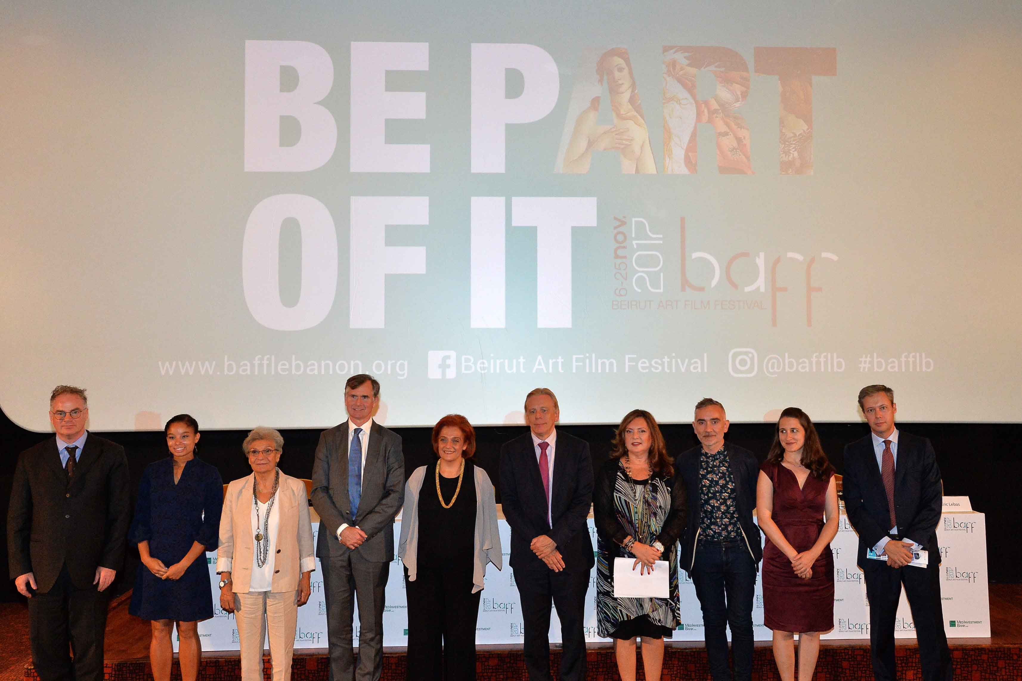 A press conference was held yesterday at the Metropolis-Empire-Sofil to announce the 3rd edition of the Beirut Art Film Festival (BAFF) in the presence of the British ambassador Hugo Shorter, the Belgian Ambassador Alex Lenaerts, the Chargé d’Affaires of the Spanish Embassy Ricardo Santos, the Chargé d’Affaires of the Embassy of Switzerland Elisabeth Gilgen, the cultural attaché at the United States Embassy Kristin Smith, the director of the Italian Cultural Institute Dr. Edoardo Crisafulli, the Cultural attaché at the French Embassy Eric Lebas, founder of the Beirut Art Film Festival Alice Mogabgab Karam, members of the committee Maria Chakhtoura and Nadine Mokdessi, as well as representatives of partner institutions.