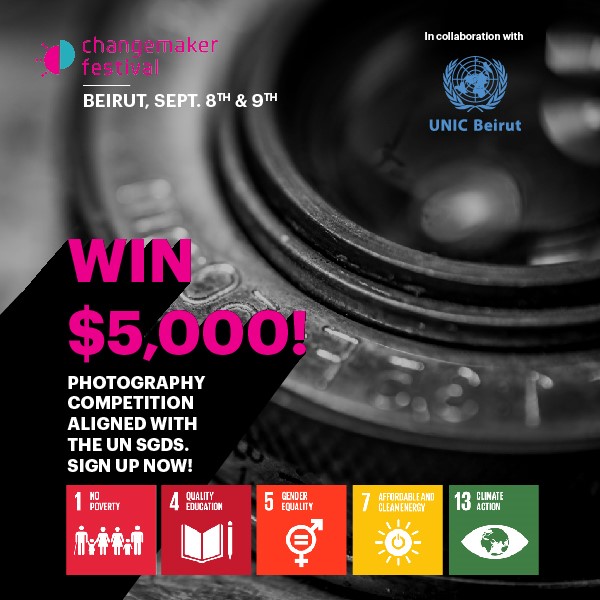At the Changemaker Festival, organized on 8-9 September in collaboration with the United Nations Information Centre in Beirut (UNIC Beirut), get the chance to win $5,000 in cash through competing in the SOCIAL MEDIA PHOTOGRAPHY COMPETITION.