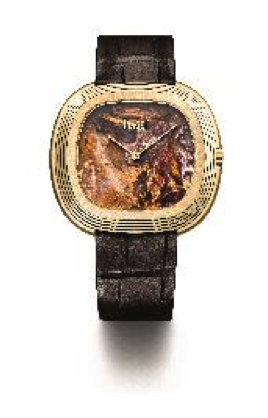 For Only Watch 2017, Piaget introduces a Black Tie Vintage Inspiration piece in yellow gold recalling the colour theme of this year’s edition of Only Watch, featuring a hard stone dial in brown pietersite. Known as the Tempest Stone with its highly charged energy, pietersite is a powerful protection stone, especially against the elements.