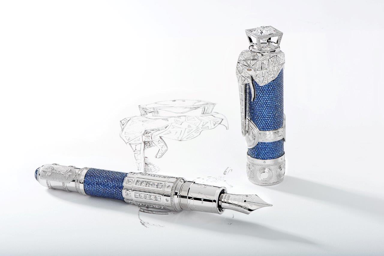 In honour of his strategic genius, the Hannibal collection displays several outstanding techniques from stone cutting and setting, to granulation lacquering and cutting-edge technology like the use of ultraviolet laser. While these innovations reflect Montblanc’s pioneering spirit, they also mirror Hannibal’s lifelong passion for pushing boundaries in his unstoppable quest for glory. The design of the new High Artistry editions is inspired by the major events of the second Punic war when Hannibal made his epic crossing of the Alps in 218 BC accompanied by his elephants. Each of the editions features a cap top in the shape of an elephant with a clip shaped like the animal’s trunk. In reference to his military exploits, many details used in the editions evoke the military armour worn by the Punic army, whether delicate engravings on the cone ring to ancient drawings to Punic armour design engraved on the nib. When Hannibal’s generals warned him that it would be impossible to cross the Alps on the back of an elephant, he said “Aut viam inveniam aut faciam” (“I will either find a way, or make one”). Limited to just one piece worldwide as a tribute to this fearless individual and with a price of €1.5 million, the High Artistry Homage to Hannibal Barca Limited Edition 1 features a dazzling combination of white gold and diamonds contrasting with a full pave of blue sapphires. The elephant trunk clip is one of the most sophisticated clips ever conceived by Montblanc with all stones set on clip and elephant head of the cap individually cut and set by hand requiring months of meticulous work. Because of the unusual shape of the clip, the Montblanc Artisan Atelier developed an external tensioned clip to achieve the design and aesthetics of the elongated trunk of the elephant, while at the same time providing high precision and smooth clip function. The white gold fitting stands out against the deep blue of the sapphires on the barrel, embellished with individual rows of carée cut diamonds. Celebrating his epic journey to victory, the forepart of the writing instrument is engraved with his route from Carthage to the Rome. The Au750 solid gold nib is decorated with a special design representing the Carthaginian deity Baal’Hammon and adorned with two brilliant-cut diamonds. Crowning the fountain pen, a magnificent 6.03 ct. brilliant-cut DFL diamond is displayed on a stone-holding table set with diamonds. Achieving this feat of stone-setting virtuosity requires absolute precision from Montblanc’s stone setters. A blue sapphire cabochon from Ceylon shines at the base of the cone, adding dazzling elegance to this one-of-a-kind work of art.