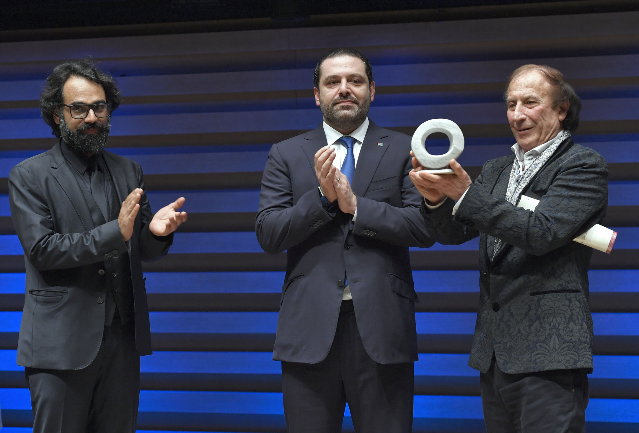 The ceremony concluded with the presentation of the award to Abdel Halim Caracalla by H.E. Saad Hariri and Omar Rajeh, in recognition of his relentless artistic & cultural achievements.