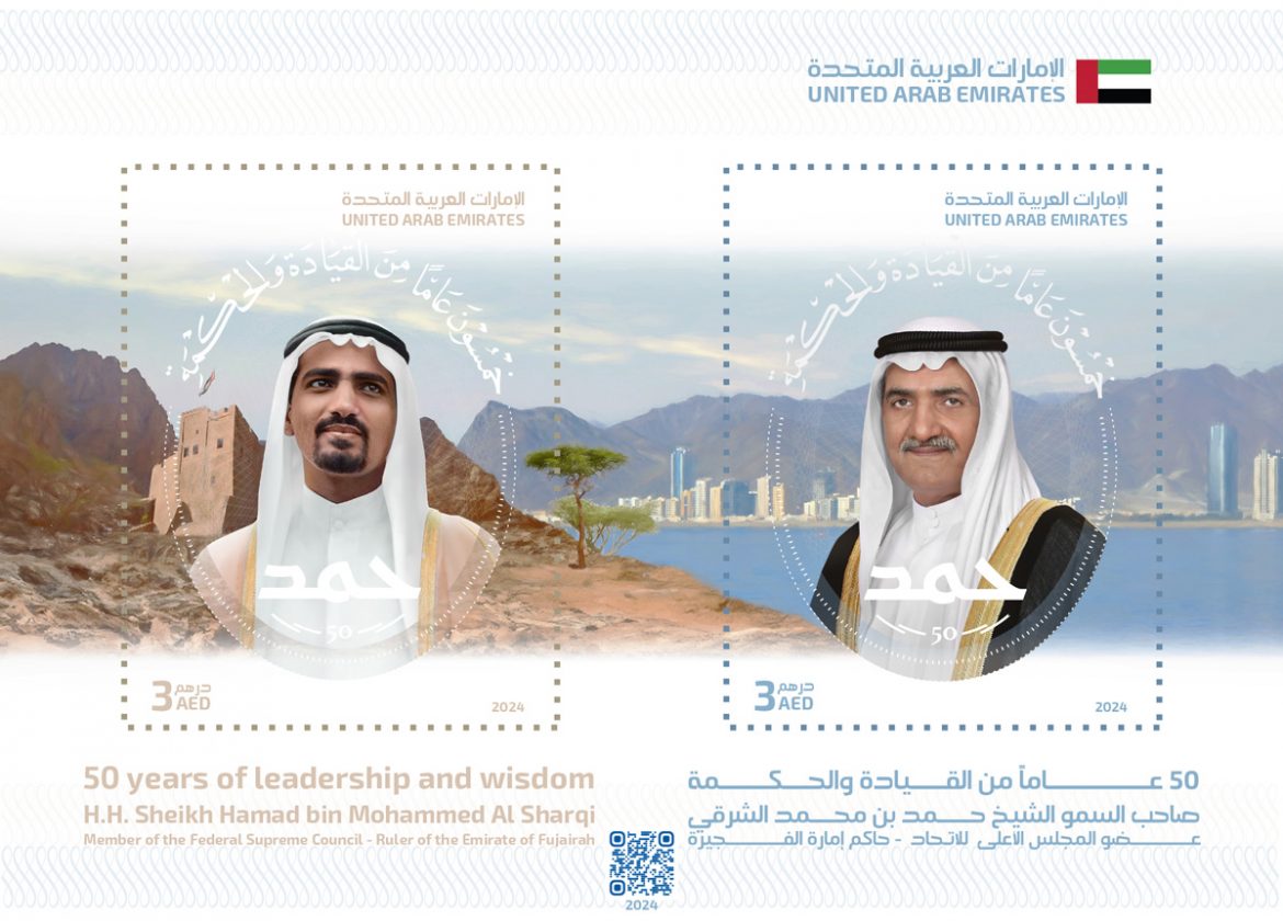 7X, previously known as Emirates Post Group, in collaboration with the Fujairah Government Media Office, issued special commemorative stamps celebrating the 50th anniversary of the ascension of H.H. Sheikh Hamad bin Mohammed Al Sharqi, Member of the Supreme Council and Ruler of Fujairah.