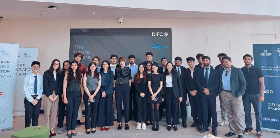 The International Ad Hoc Negotiation Competition 2025 commenced with a briefing at the DIFC Innovation Centre, followed by rounds held across leading law firms including HFW, Dentons, M&Co Legal, and the Semi Finals at the Ismaili Centre, with the grand finals culminating in an unforgettable desert round. The competition brought together 24 teams and over 100 participants. India achieved outstanding success, securing among the top five positions through teams representing National Law School of India University (Mahek Jhaveri, Shreya Rajesh, Harshvardhan Ray) at number 2, Damodaram Sanjivayya National Law University, Visakhapatnam (Utkarsh Gupta, Sumangala Bhargava, Yash Vineesh Bhatia) at number 3 and West Bengal National University of Juridical Sciences NUJS (Vaishali Bhatia, Varnika Khanna, Pratyaksh Jain) at number 4.