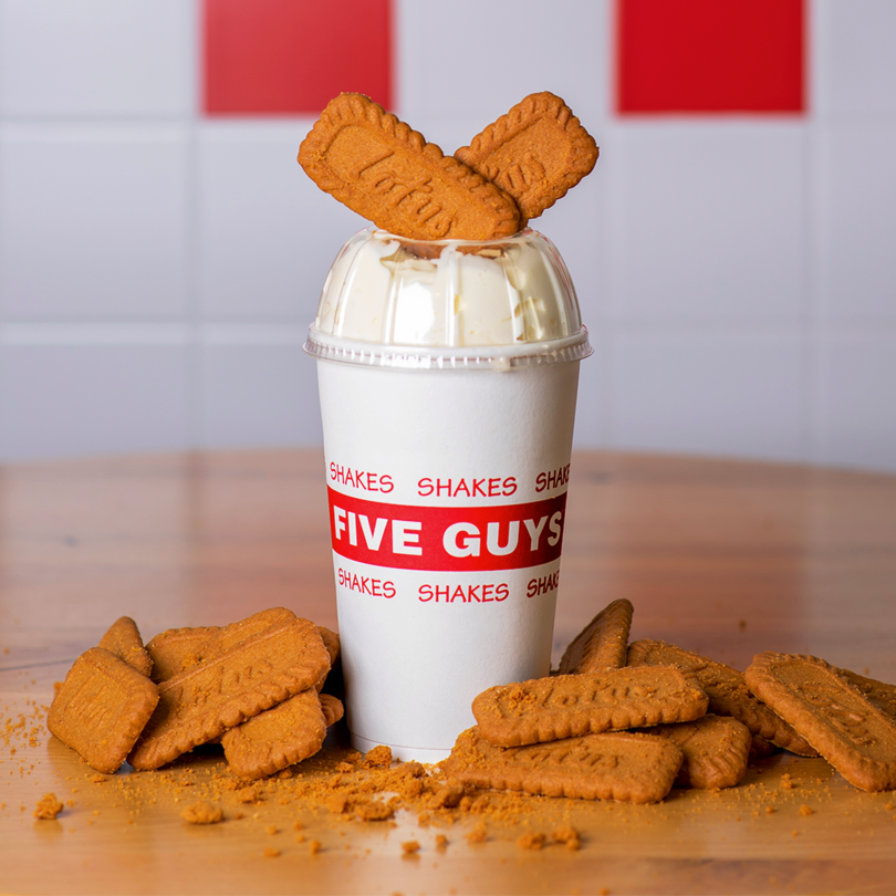 Dubai, United Arab Emirates, 11 April 2023: Five Guys has announced today the debut of Lotus Biscoff® Caramelized Cookie Crumble as the newest milkshake mix-in in all branches across the United Arab Emirates. Five Guys is known for its abundance of combinations to curate truly unique milkshake flavours, and this latest addition is sure to be appreciated by thousands in the UAE.