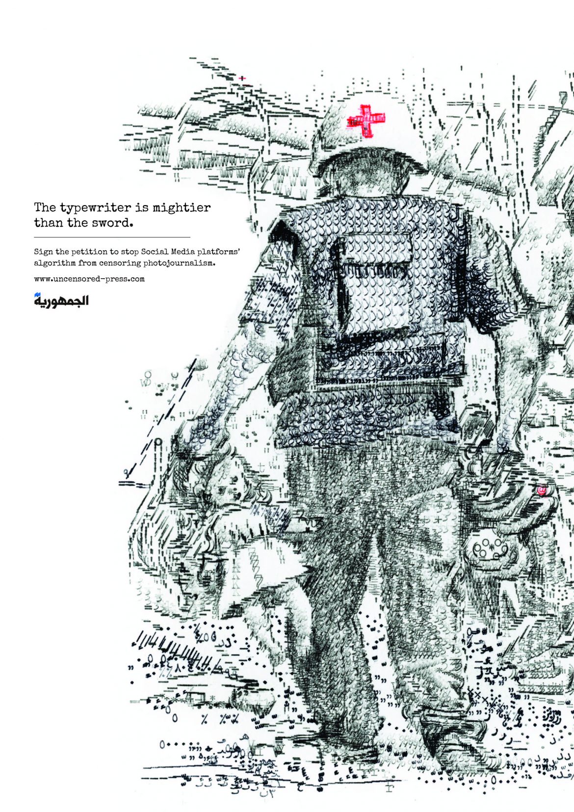 In an innovative effort to bypass digital censorship, Al Joumhouria collaborated with artist Keira Rathbone to recreate scenes of conflict solely through letters and symbols typed on a typewriter. These intricate, typewritten visuals retain the emotional and journalistic impact of the original images, while escaping automated censorship filters—proving that powerful images can endure when transformed into text. By using the very foundation of journalism—words—they ensure that crucial stories continue to be shared freely.
