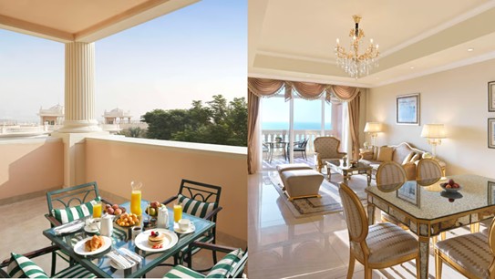 - Palm Two-Bedroom Suite – 163 m² overlooking the tranquil Palm Jumeirah Lagoon, featuring a generous living area and two beautifully appointed bedrooms.